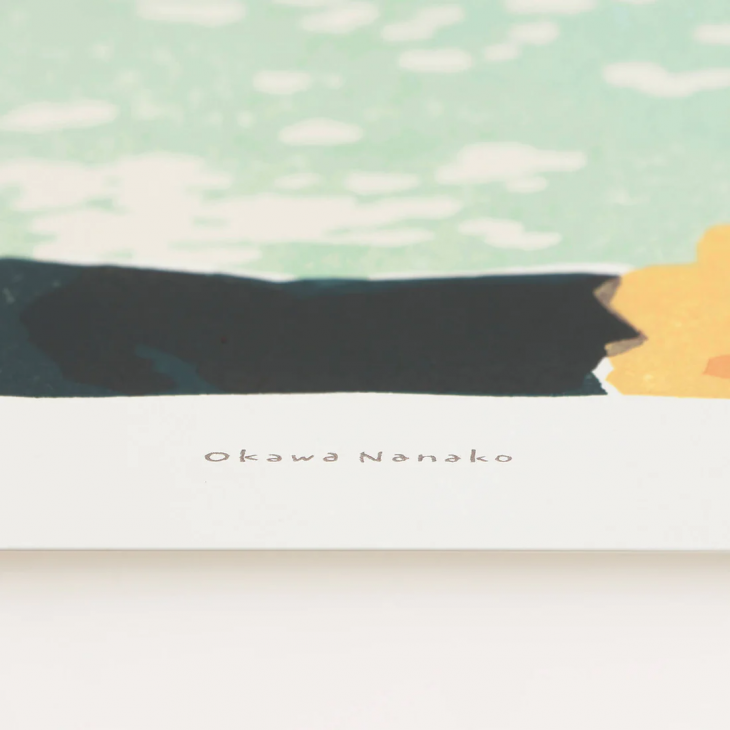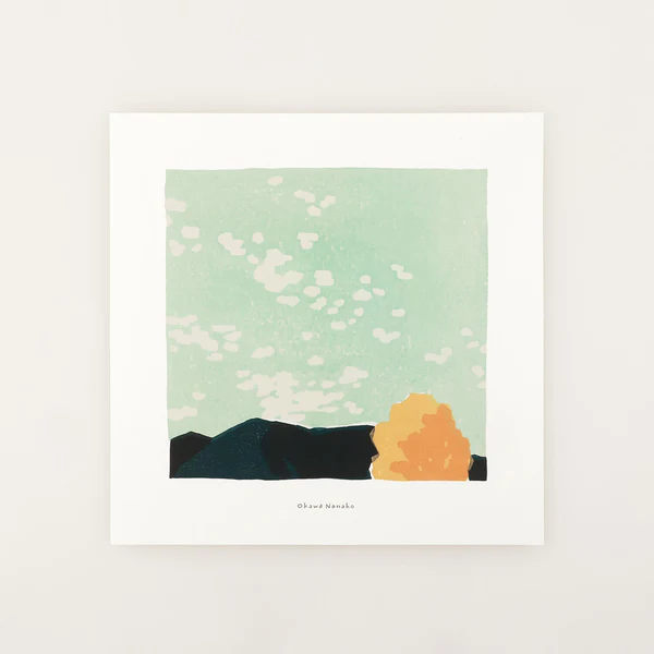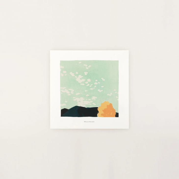 山の麓から眺めた、オパールグリーンの空に漂う千切れ雲が印象的な大川菜々子さんの描き下ろし作品。朝の始まりを感じさせてくれますね。皆さんの心の中に浮かぶ風景と重ね合わせてご鑑賞ください。
