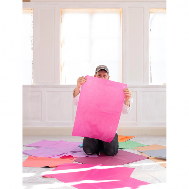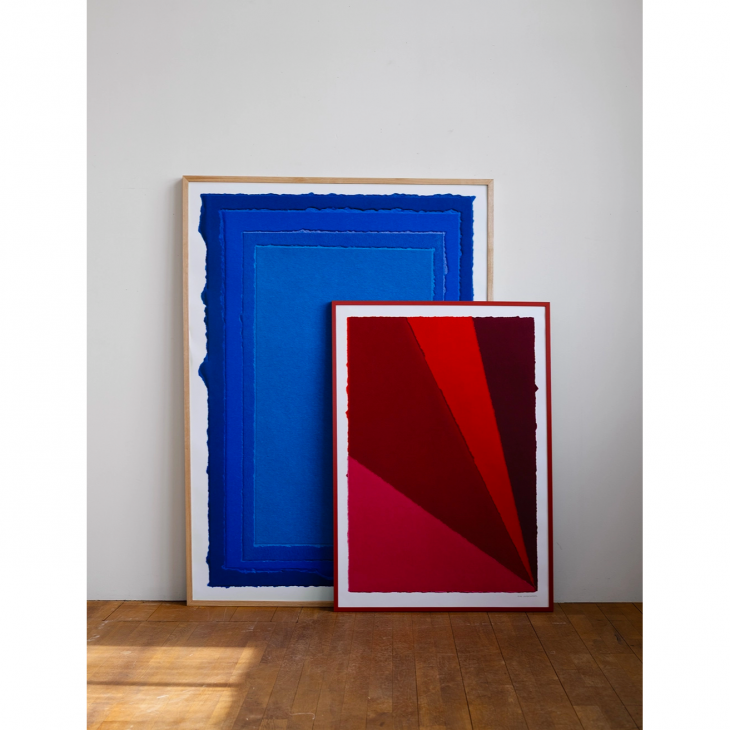 近年は紙を素材とした作品に力を入れており、引き裂かれたエッジや特徴的な色彩と形状を用いることで、構成にバランス、深み、そして躍動感を生み出しています。彼の作品は、断片と秩序、合理性と感情のコントラストを巧みに操っています。