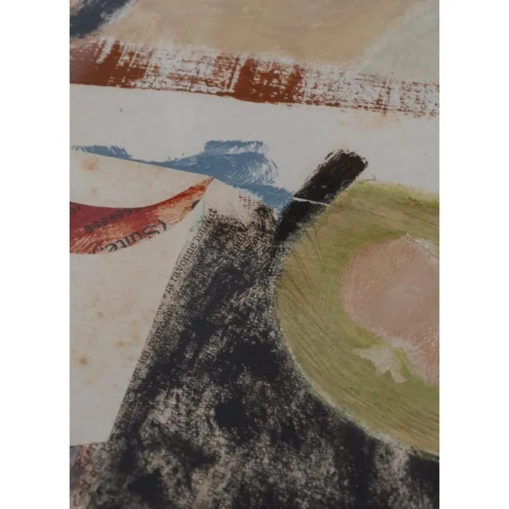 マックスはコラージュ技法を専門とし、長年にわたり、主にフランスのブロカントで見つけた古い紙、手紙、本のページ、ヴィンテージのテキスタイルを収集し、それらをアクリル絵の具や重ね塗りで組み合わせています。「古い紙の質感や手触り、落ち着いた色調、そしてタイポグラフィのニュアンスがただただ好きなんです。」