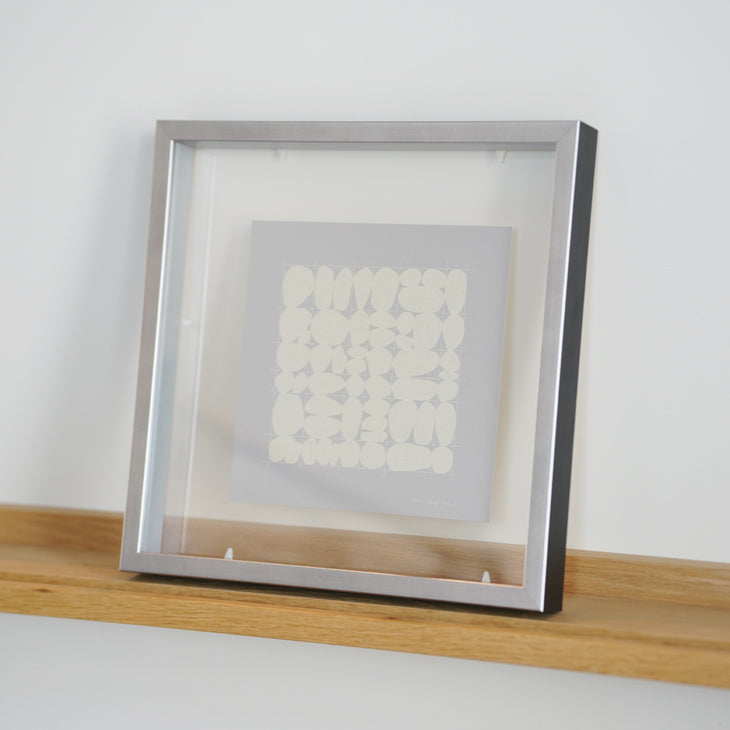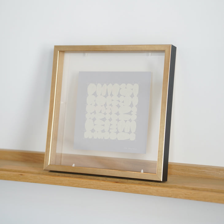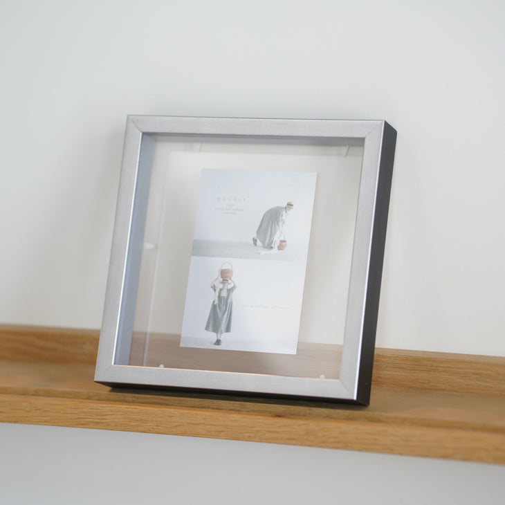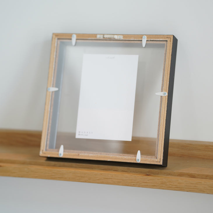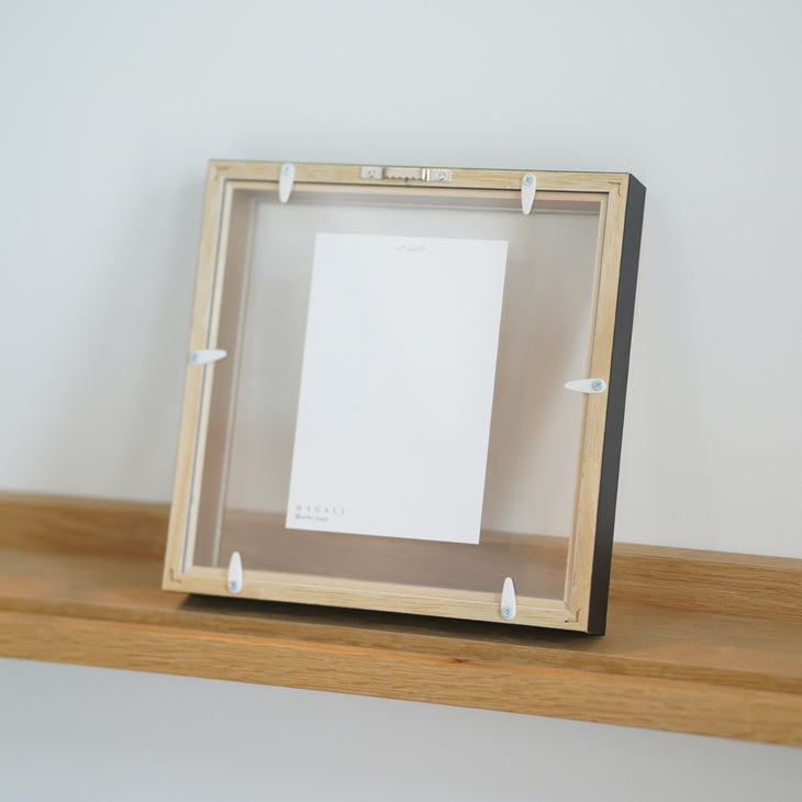 2枚の透明板で作品を挟む、前後透明の立体感のあるボックスフレーム。